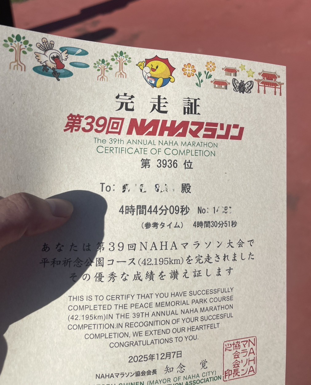 去る先月の12月7日(日)第39回NAHAマラソンに筆者の身内が初参加しました。